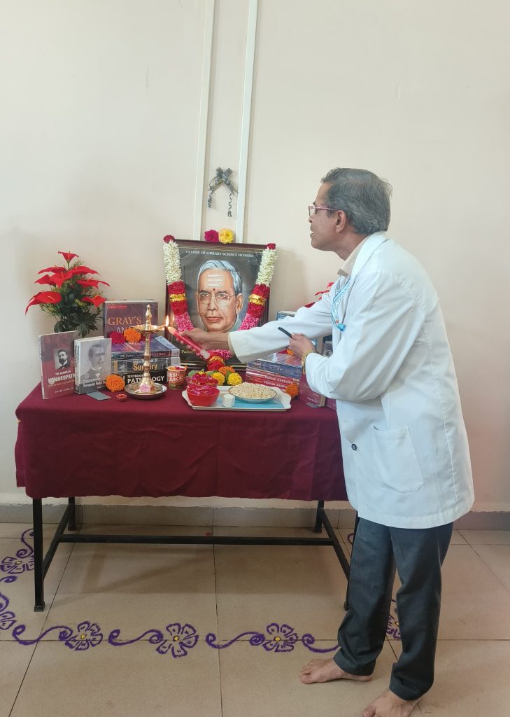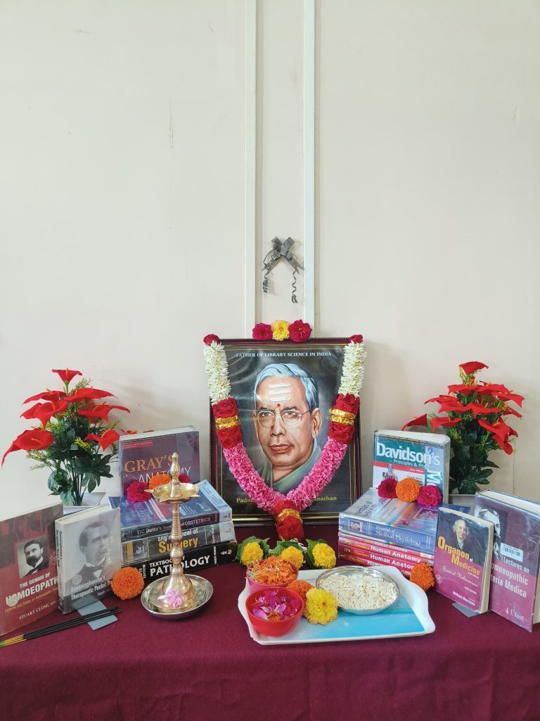 On the occasion of 132th Birth Anniversary of Father of Library Science, Padmashree Prof. Dr. S.R.Ranganathan, the Bharatesh Homoeopathic Medical College and Hospital celebrated National Library Day on 12th August 2024 in the library. Photo Pooja was done by Our Principal Dr. Shrikant B. Konkani sir and our College Librerian Mrs.Sunita Patil & Assistant librarian Mr.Ramesh Shirote in the presence of all the faculty members, PG and UG students.